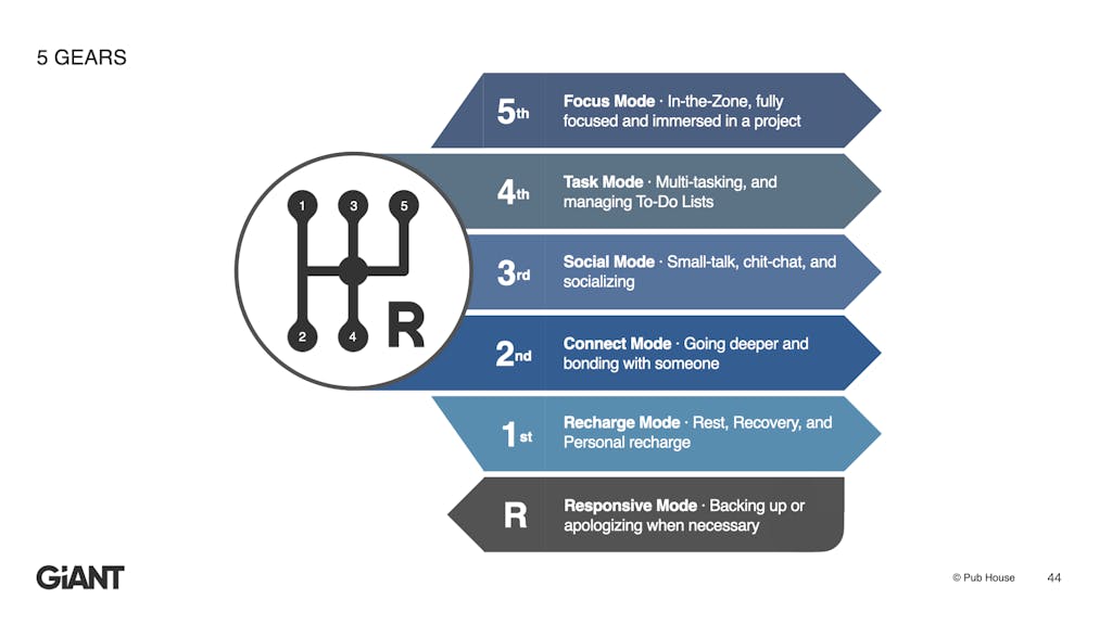 The most effective leaders and teams spend time in every gear daily. That balance builds both productivity and longevity. If you only live in 4th and 5th Gear, you’ll eventually burn out. If you linger too long in 1st or 3rd, important work will slip through the cracks.
