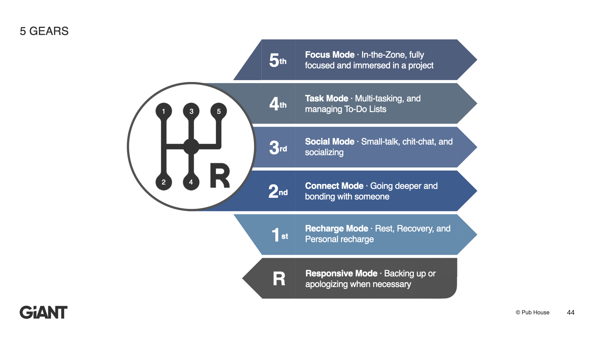 - 2nd Gear – Connect mode, going deeper in one-on-one conversations.