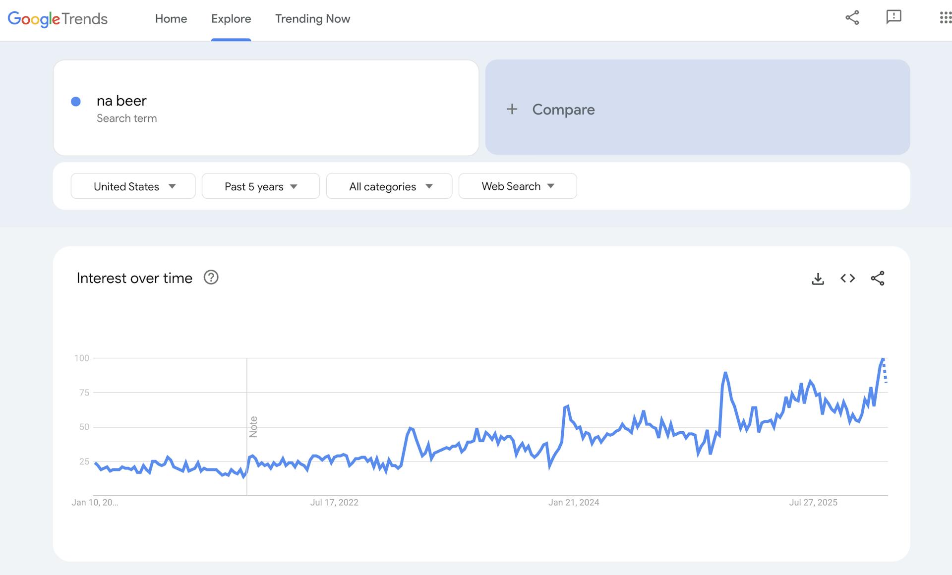 - The peak for NA Beer search volume is this year (2026).