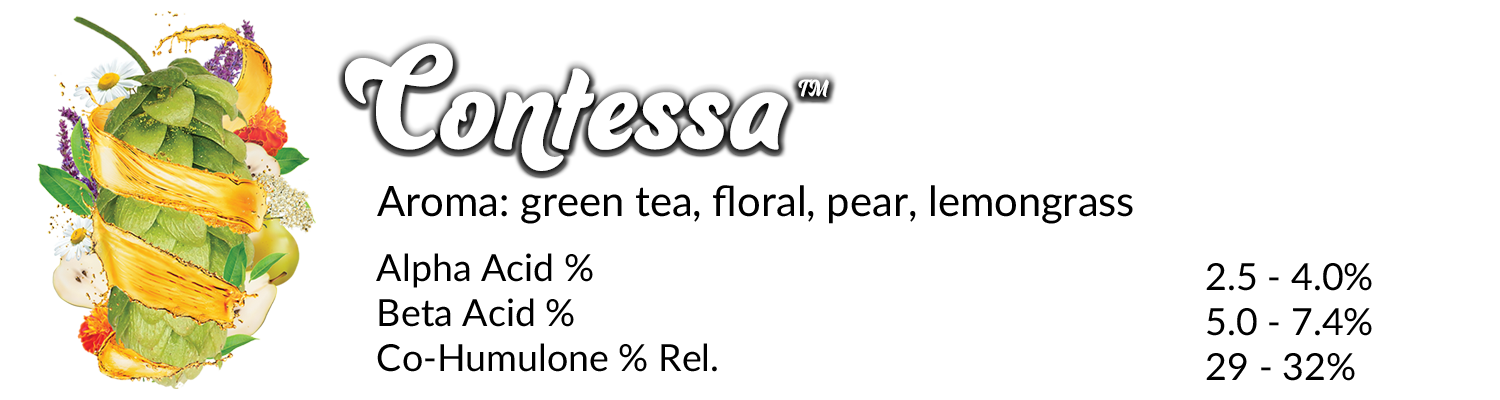 Developed by Hopsteiner and grown in the Pacific Northwest, Contessa was bred with lager brewers in mind. It delivers the delicate, refined aromatics expected in noble-style hops but with an American-grown pedigree that provides supply chain stability and local terroir benefits. Contessa’s profile leans towards pear, green tea, and subtle floral notes. These characteristics make it ideal for traditional Helles, Pilsners, and Export lagers where subtlety is paramount.